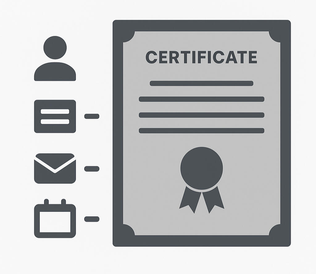 Get professional certificates as PDFs in your inbox within minutes, ready to use.